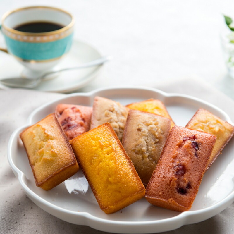 バターとアーモンドプードルで焼き上げた、しっとりとしたフルーツフィナンシェです。生地にはフルーツのピューレを混ぜ込み、表面には果肉をトッピング。香り高い味わいです。