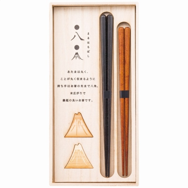 末広がりで縁起の良い八角箸と、富士山型にくり抜かれた箸置きのセットです。