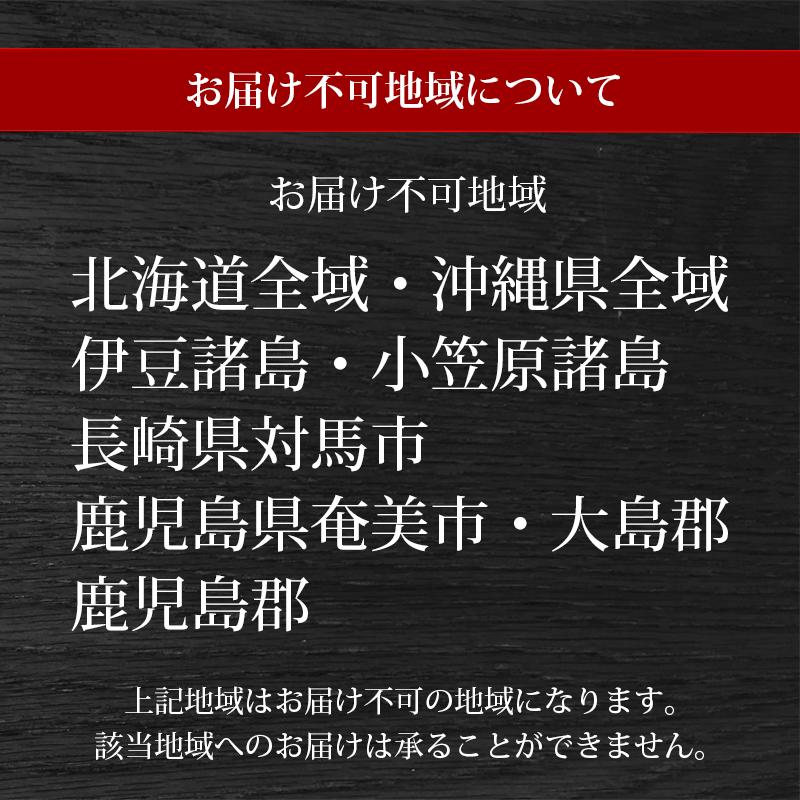 ●お届け不可地域:北海道全域・沖縄県全域・伊豆諸島・小笠原諸島・長崎県対馬市・鹿児島県奄美市・大島郡・鹿児島郡