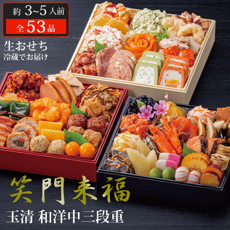 生おせち 玉清 和洋中三段重 笑門来福 ( 863886 ) 約3~5人前 3段重 全53品
