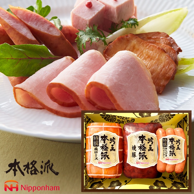 ●内容:本格派吟王特撰肩ロース 180g、本格派吟王焼豚150g、本格派吟王特撰あらびきウインナー70g●配送区分:冷蔵●賞味期限:メーカー製造日より冷蔵60日●保存方法:冷蔵●パッケージサイズ:168×220×72.5mm