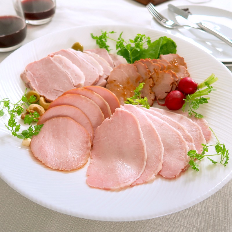 ●内容:特選ホワイトロースハム350g、直火焼やきぶた190g、特選ももハム(ホワイト)300g●配送区分:冷蔵●賞味期限:メーカー製造日より冷蔵55日●保存方法:冷蔵