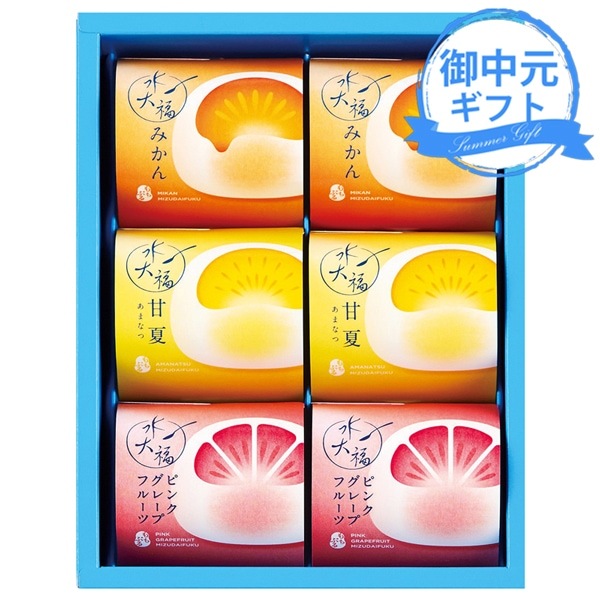 ●商品内容 水大福61g×6(みかん・甘夏・ピンクグレープフルーツ×各2) ●パッケージサイズ:箱サイズ:198×148×44 ●賞味期限:製造後180日