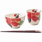 花かいろう飯碗湯呑(天宝箸付) サザンカ 40481 (-2117-047-)