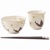花かいろう飯碗湯呑(天宝箸付) モクレン 40482 (-2117-059-)