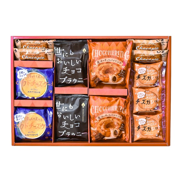 ●商品内容:サクサクチョコパイ×4個、ホワイトチョコ入りチーズガレット×3個、世にもおいしいチョコブラウニー・冷やして食べる!ベイクドチーズケーキ・魔法のチョコパイリング×各2個 ●パッケージサイズ:260×377×30 mm 615g ●賞味期限:製造日から40日 ●名称:洋菓子【ホワイトチョコ入りチーズガレット】【ベイクドチーズケーキ】焼菓子【サクサクチョコパイ】【魔法のチョコパイリング】【世にもおいしいチョコブラウニー】