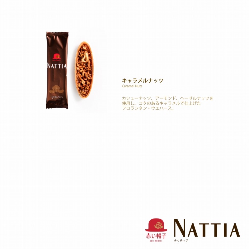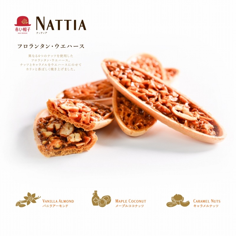 ナッツとキャラメルをウエハースにのせてカリッと香ばしく焼き上げました。